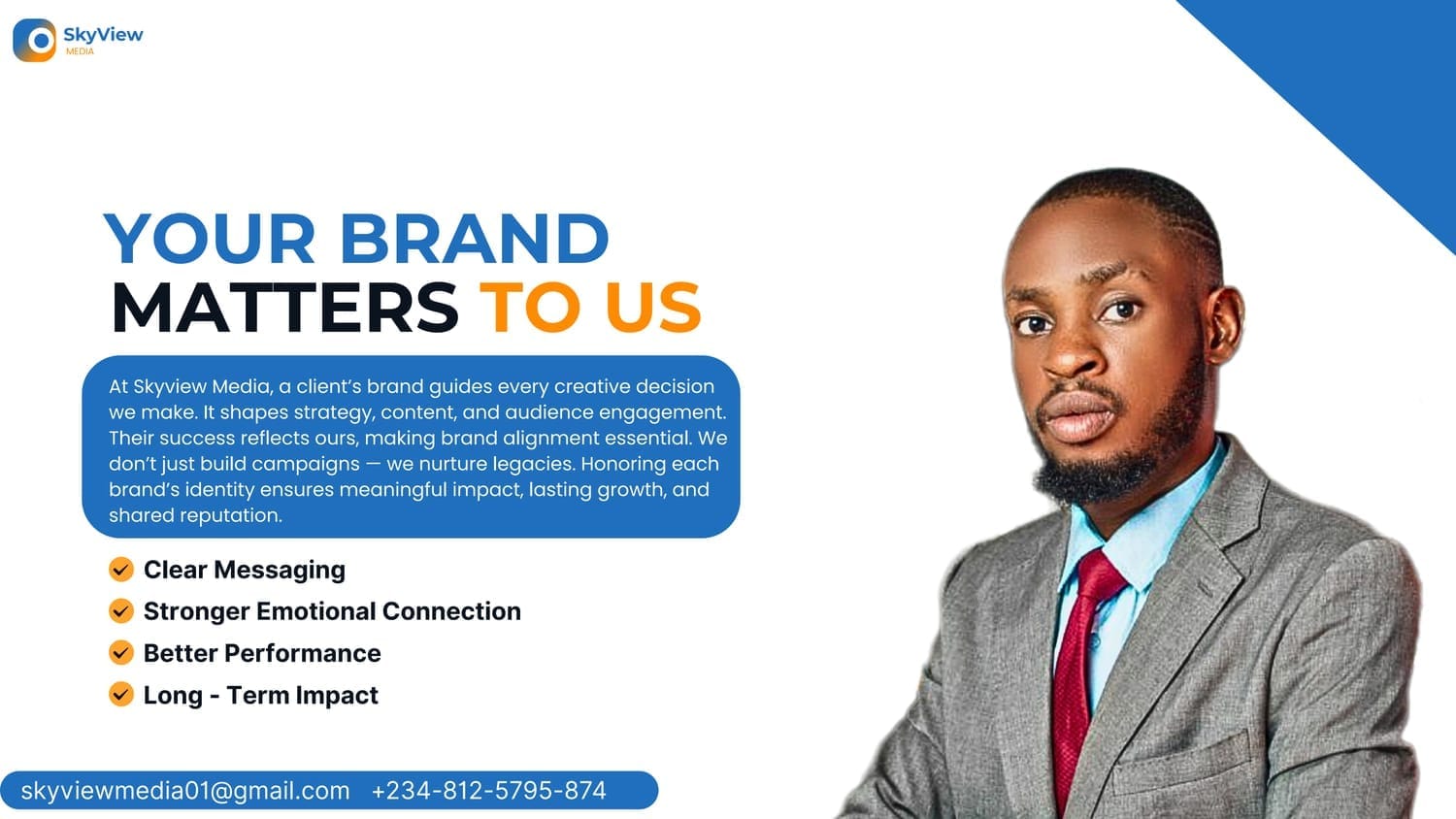 “Working with Skyview Media has totally transformed my business! Their out-of-the-box thinking, creativity, and deep industry knowledge have catapulted my brand to a whole new level. From start to finish, Chibuike and his team have blown me away with their work ethic and knockout results.